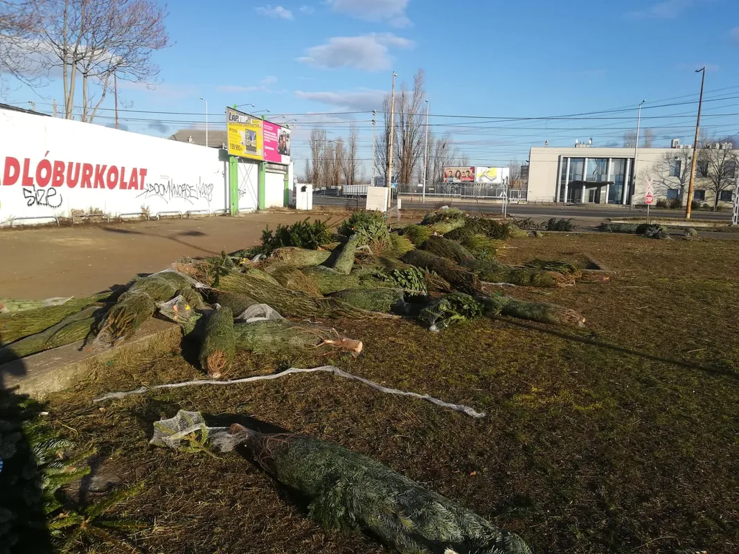 Idén viszont az utolsó nap sem engedtek az árusok az árból, inkább kidobták a megmaradt fenyőfákat.