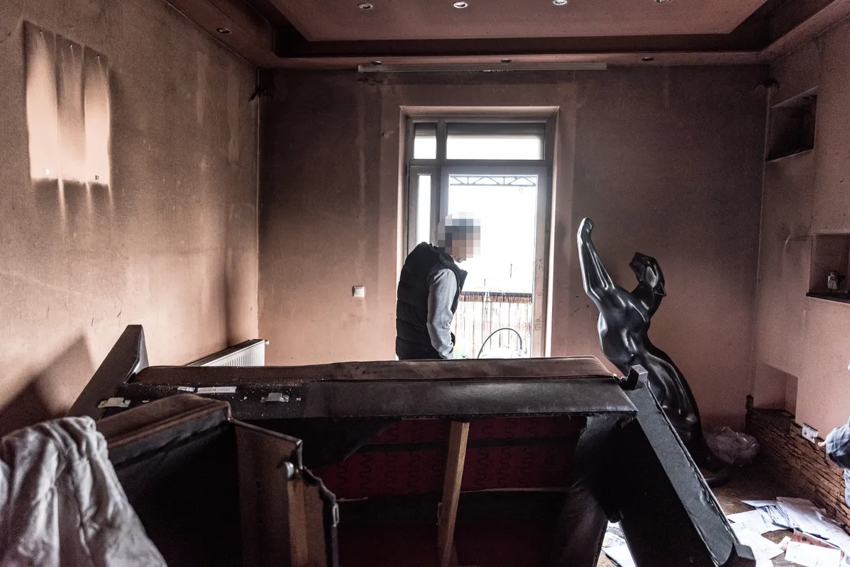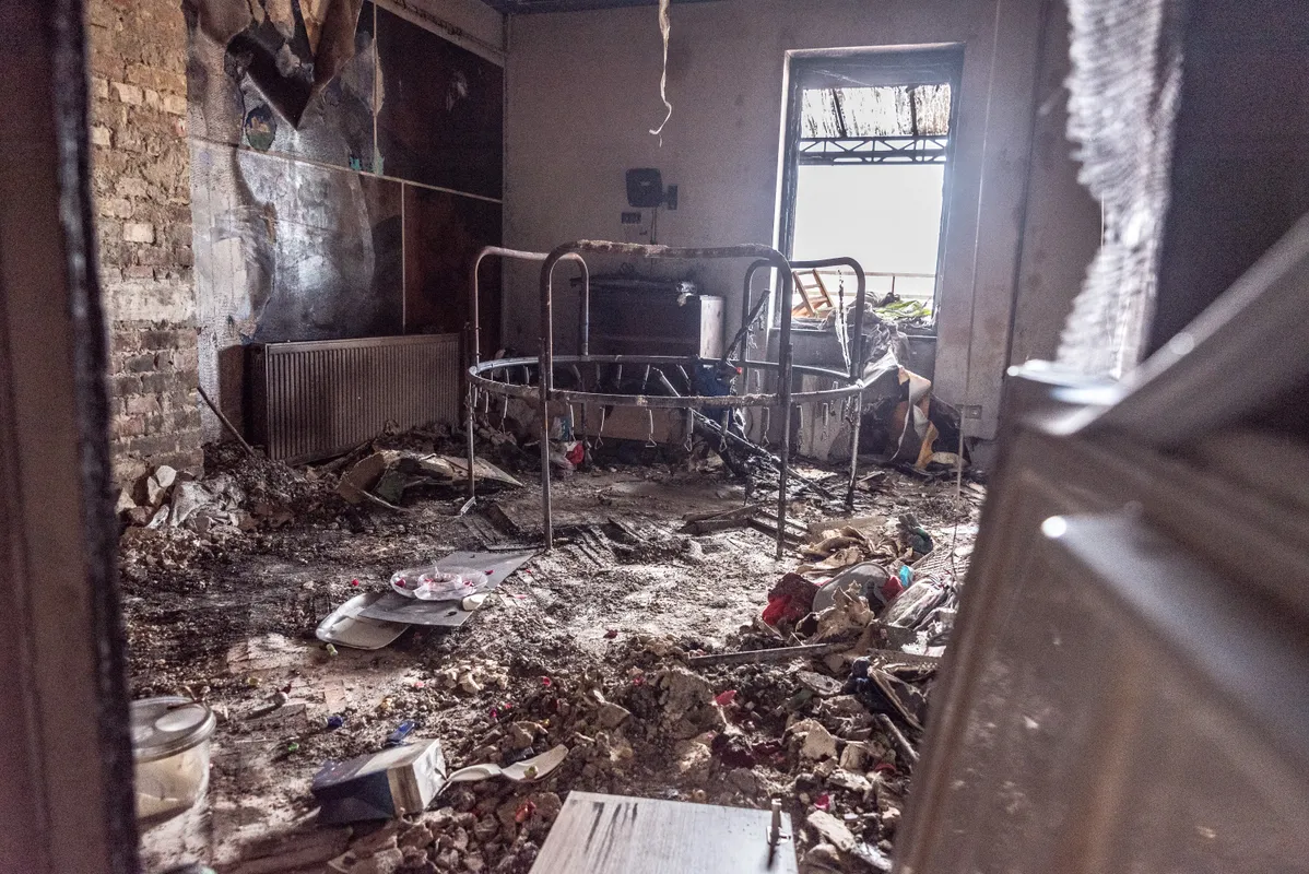 Zsanett sem tért vissza a lakásba, nem is nagyon tudott volna: a lángok szinte mindent elpusztítottak. Pedig az asszony korábban gyönyörűen felújította az önkormányzati lakást: mindenhol új burkolat, igényes bútorok, jó minőségű háztartási gépek voltak. Legjobban a gyerekszoba sínylette meg a tüzet, ide be se lehet lépni a sok törmeléktől, messziről látni csak, ahogy a kiégett trambulin árválkodik a szoba közepén.
