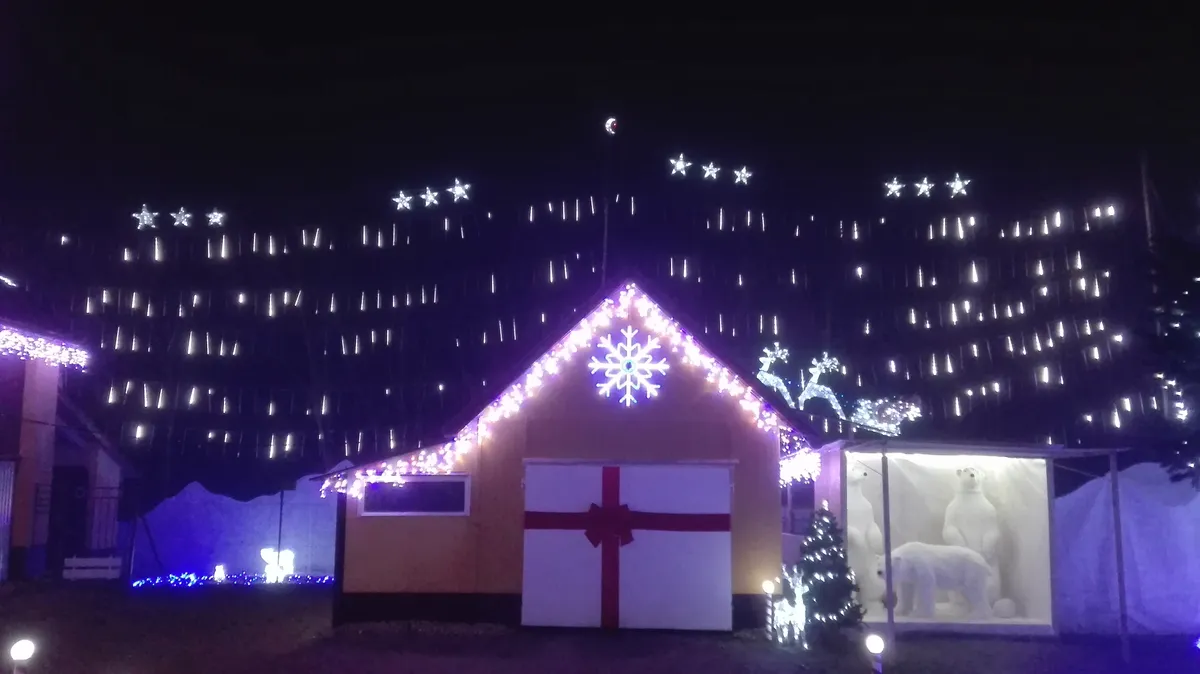 A fantasztikus mesevilágba ingyenes a belépés, és eddig még senki nem bánta meg, hogy ellátogatott Csákánydoroszlóba. Rögtön a kapunál egy hat méteres hóember fogadja a belépőket, mögötte jéghegyek magaslanak, előtte pedig egy kis led-patakban úszik néhány hattyú. A háttérben hópelyhek szállingóznak, tíz méter magasról, az égen pedig ragyognak a csillagok és a hold. A pingvinek és a rénszarvas mellett elhaladva megérkezünk az idei év nagy különlegességéhez: a táncoló jegesmedvékhez.