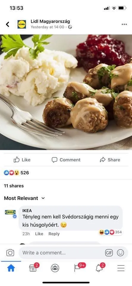 A Lidl tegnap gyanútlanul tette ki svéd húsgolyó hirdetését, de arra nem számítottak, hogy beindul a kommentcunami a bejegyzés alatt. Ráadásul nem is akárkik trollkodták meg az áruház posztját, hanem a húsgolyóban konkurenciának számító IKEA. Aztán minden elszabadult...
