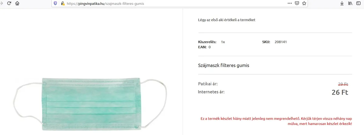 „Nem tudok adni, hiánycikk„ – ezt a választ kaptuk az óbudai patikában, amikor szájmaszkot kértünk. Másik négy budapesti patikában is érdeklődtünk, de mindenhol kifogytak a gumis és a kötős változatból is.