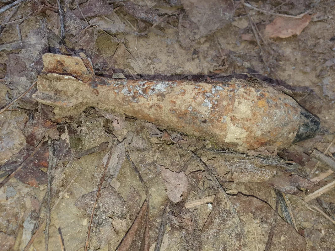 Információink szerint az erdős területen egy kutyasétáltató látta meg a földön a furcsa alakú tárgyat. Amikor közelebb ért, látta, hogy egy régi, rozsdás bomba, így értesítette a katasztrófavédelmet.