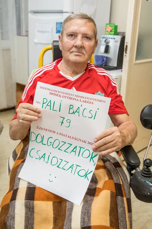 „Én már 79 éves vagyok. Rengeteg minden történt velem az évek során, például elveszítettem a lábamat, így tudom, milyen érzés fent és milyen egészen lent. A legjobb éveimet akkor éltem, amikor dolgoztam és csajoztam. Kocsikísérő voltam Pesten, és amikor csak tehettem, táncolni jártam meg klubokba. Most a legjobban mégis a pecázás hiányzik, sajnos nem tudok kimenni a vízhez… De nem panaszkodhatok, van két fiam, 53 és 47 évesek, nekik és mindenkinek azt üzenem: sportoljatok sokat, hiszen most még nem tudjátok, mennyire fontos lesz ez később!”