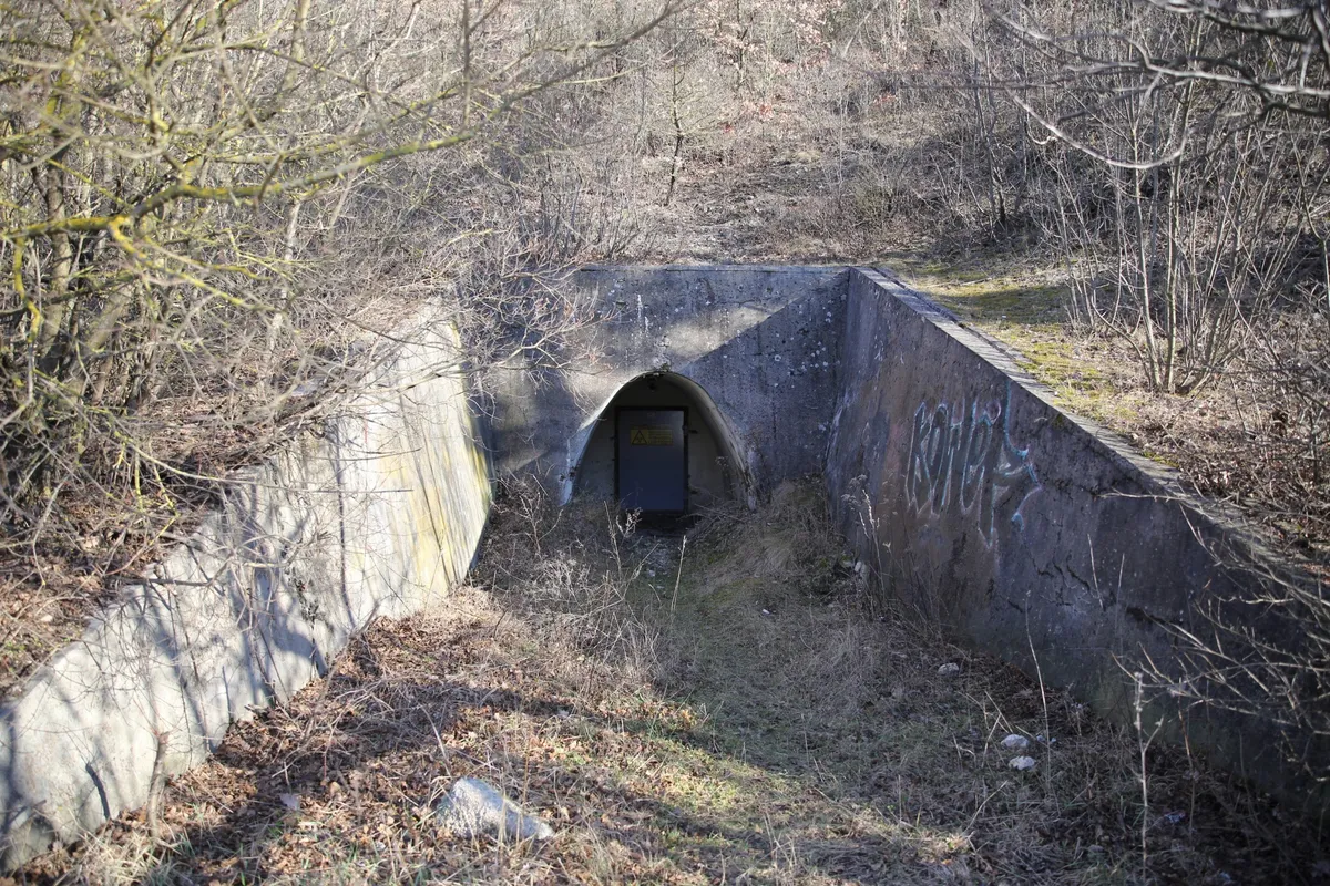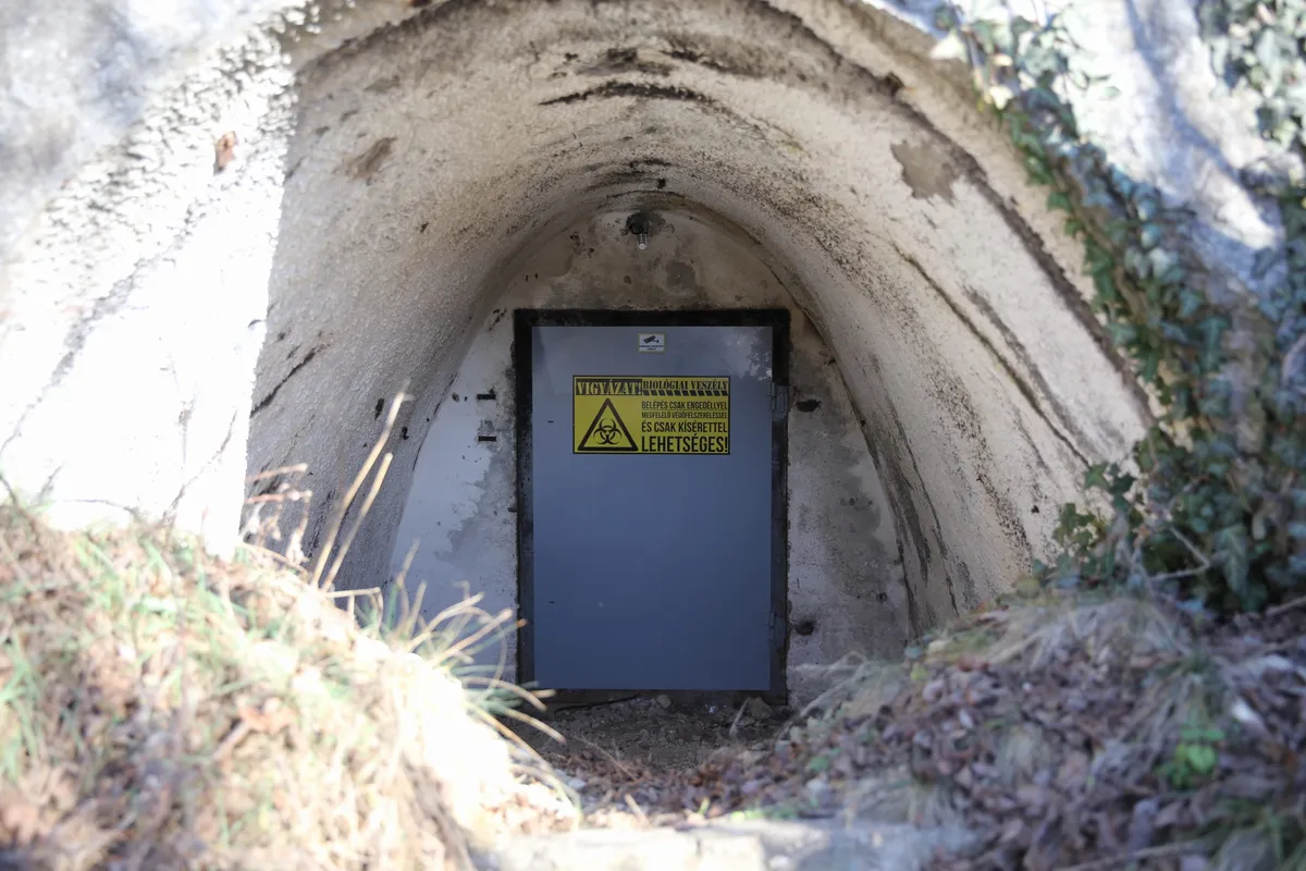A nagy vasajtó fölött kamera is vigyáz arra, hogy ne mehessenek be illetéktelenek. Két bejárat van a domb oldalában, egymástól 100 méternyi távolságra. A másiknál is figyelmeztető tábla és kamera fogad.