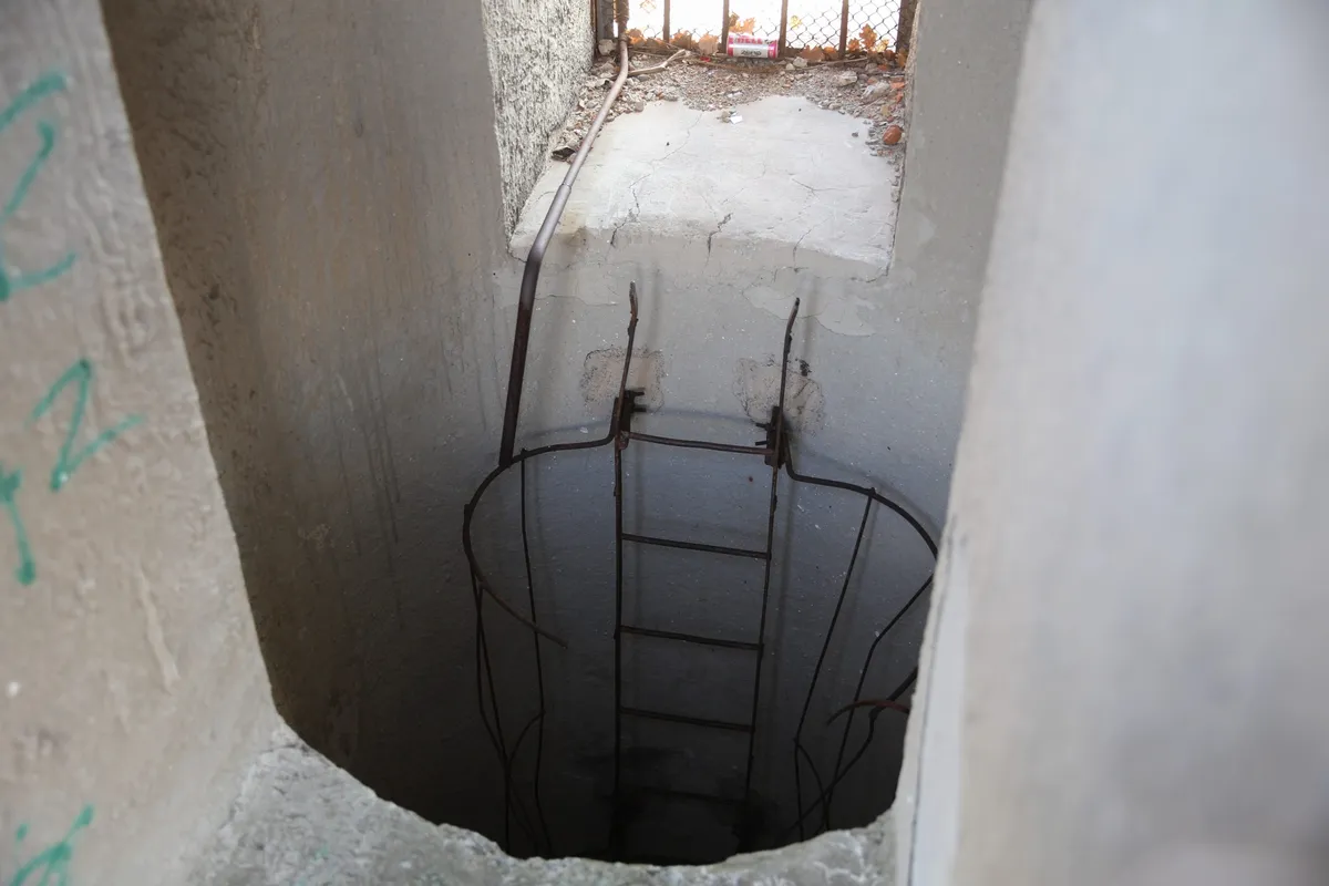 A két vészkijárat a domb tetején tökéletesen álcázott, messziről olyan, mintha két kis házikó lenne a dombon, csak közelebb érve látjuk: mindkét kis épületből vaslétra vezet le a mélybe.