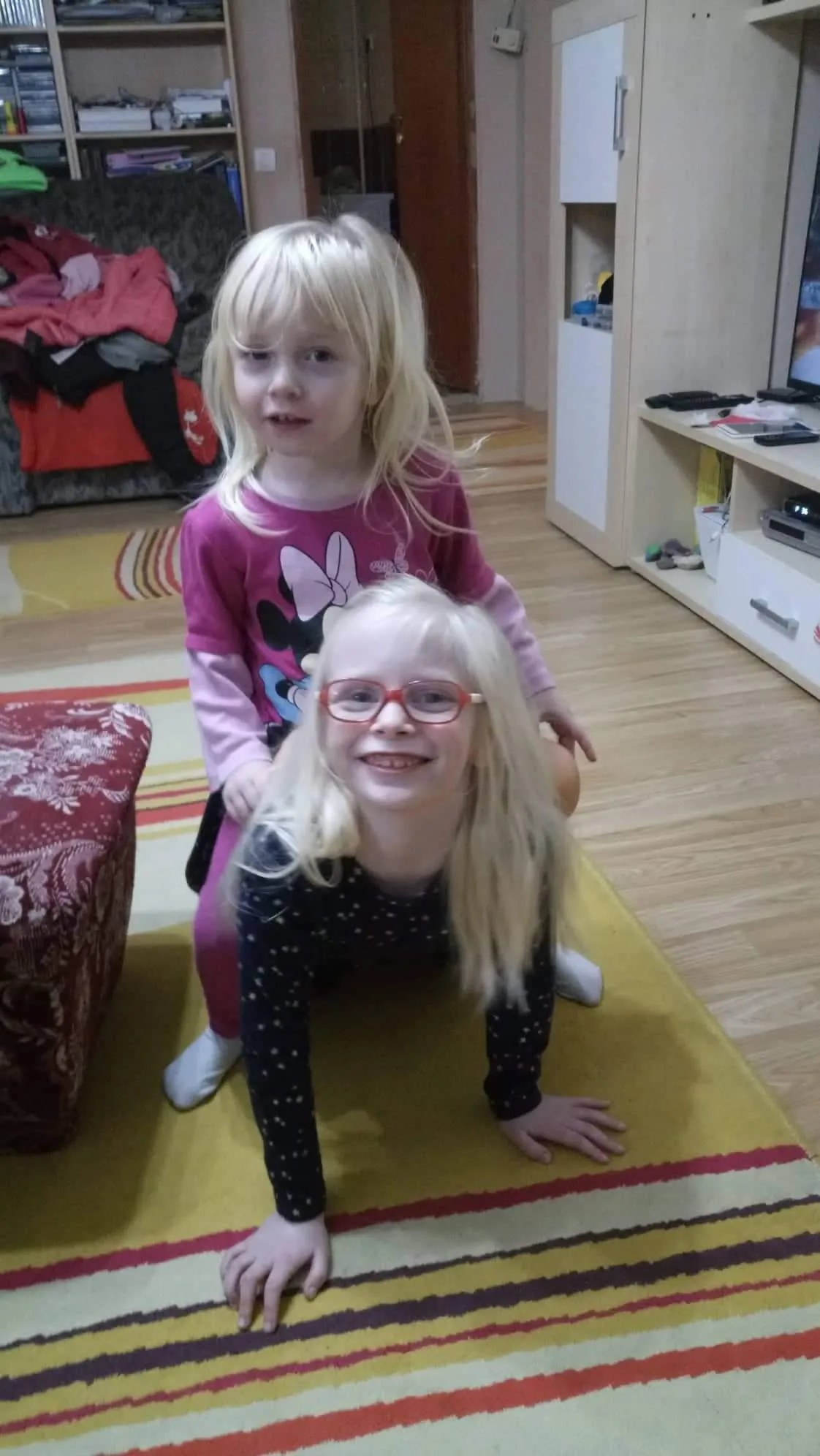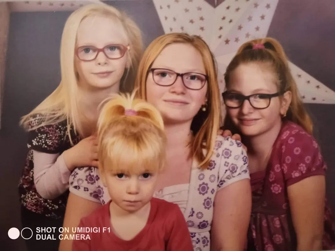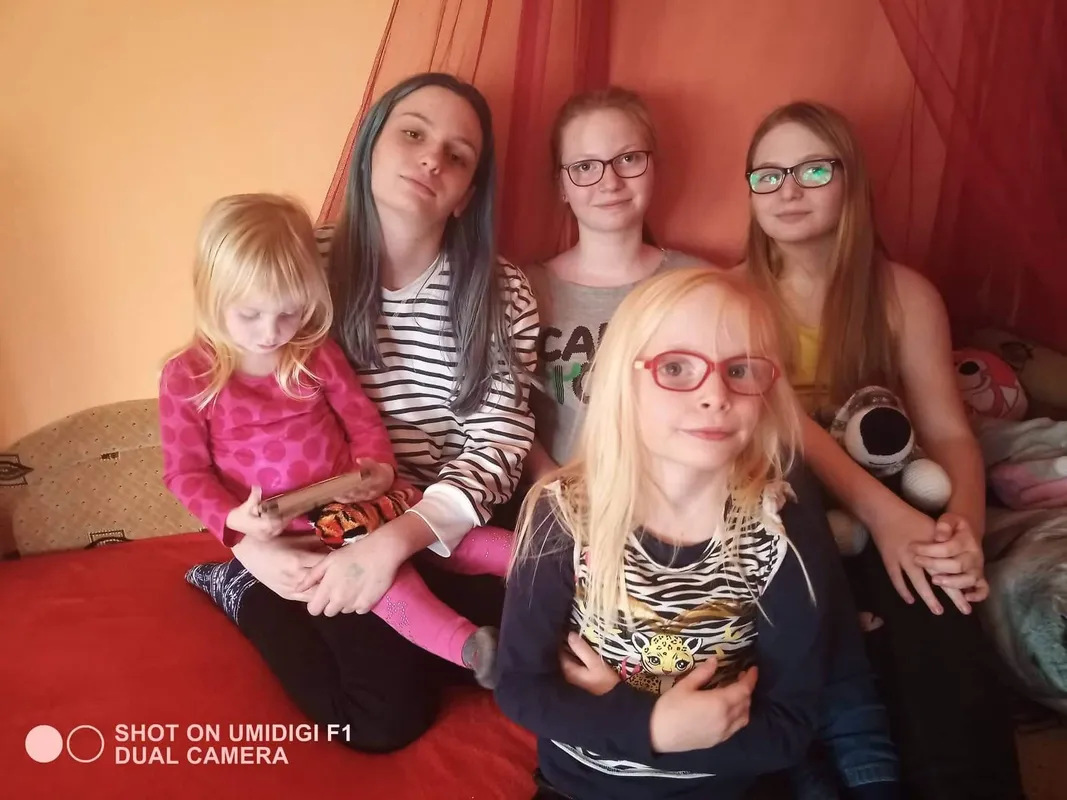 „Másfél éves volt Emma, amikor eljutottunk a budapesti szemklinikára. Ott a doktornő minden előzmény ismerete nélkül ránézett, és megkérdezte: a többi gyermekem is ilyen szőke? Majd elmondta, hogy Emma minden bizonnyal albínó, ami a szemére is kihat. A rezgés ugyanis egy albinizmussal gyakran együtt járó betegség, a nystagmus miatt van” – folytatja Emese. – „A következő két kislányunkat, Maját és Lizát már abban a tudatban vártuk, hogy könnyen lehet, ők is albínók lesznek. Így is történt. Mindenkinek szemüveget kell hordania, mivel a szemükben lévő pigmenthiány miatt pusztán a látás is túlzottan megerőlteti az agyukat. Ha nem hordják egész nap, akkor estére jön a migrén… Az albinizmus a hajukat és a bőrüket is érinti: tejfölszőkék és porcelánfehérek, még télen is le tudnak égni. Nyáron csak délután 5-6 után, talpig naptejben tudnak kilépni a házból.”