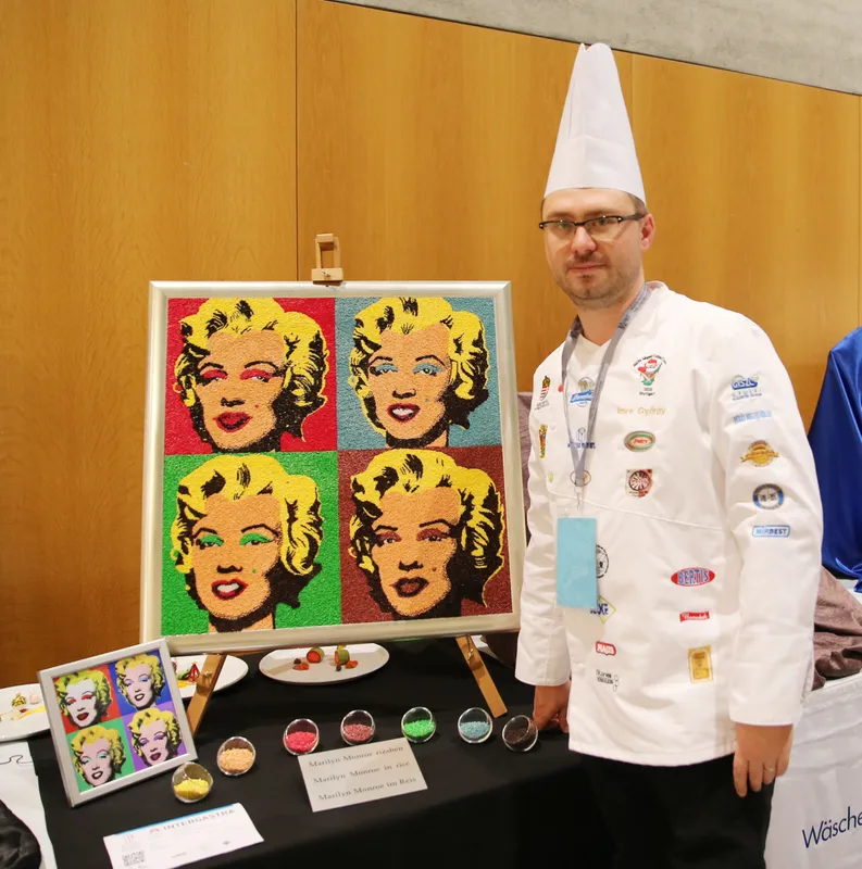 „Négy napon keresztül ezer versenyző méri össze tudását. Hajnali ötkor kezdjük el kipakolni a versenymunkákat, amiből a zsűri választ„ – mesélte a Ripost-nak György. „Az egyéni versenyzők mindig előre készítik el a munkájukat: én már november óta dolgoztam a Marilyn Monroe rizsművészeti portrén, napi 2-3 órát. Nekem ez a hobbim, imádom!”