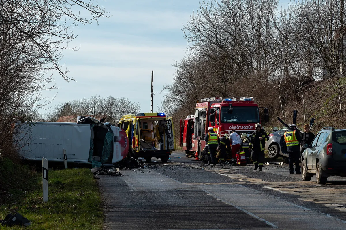 Tűzoltók, rendőrök és mentők dolgoztak egy összeroncsolódott személyautó és egy oldalára dőlt kisteherautó mellett az 54-es főúton Sükösd térségében. Az autó és a kisteherautó balesetének körülményei eddig még tisztázatlanok.