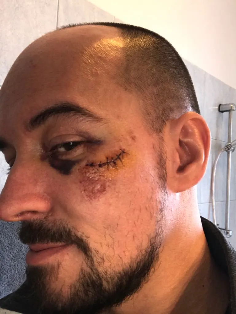 „Az arccsontomra estem, ami egyből dagadni kezdett, és azzal együtt kezdett szétnyílni a körülbelül öt centis seb” – emlékszik a férfi. „Sokáig senki nem segített, elmentek mellettem. Végül egy fiatal srác odajött, megkérdezte, jól vagyok-e, hívjon-e mentőt. Azt se tudtam hirtelen, hol vagyok és mi történt, de úgy gondoltam, inkább hazamegyek. Valahogy hazakecmeregtem, megmostam az arcom, kicsit magamhoz tértem, aztán a saját lábamon mentem be a közeli kórházba, ahol megröntgeneztek és összeöltötték a sebet.„
