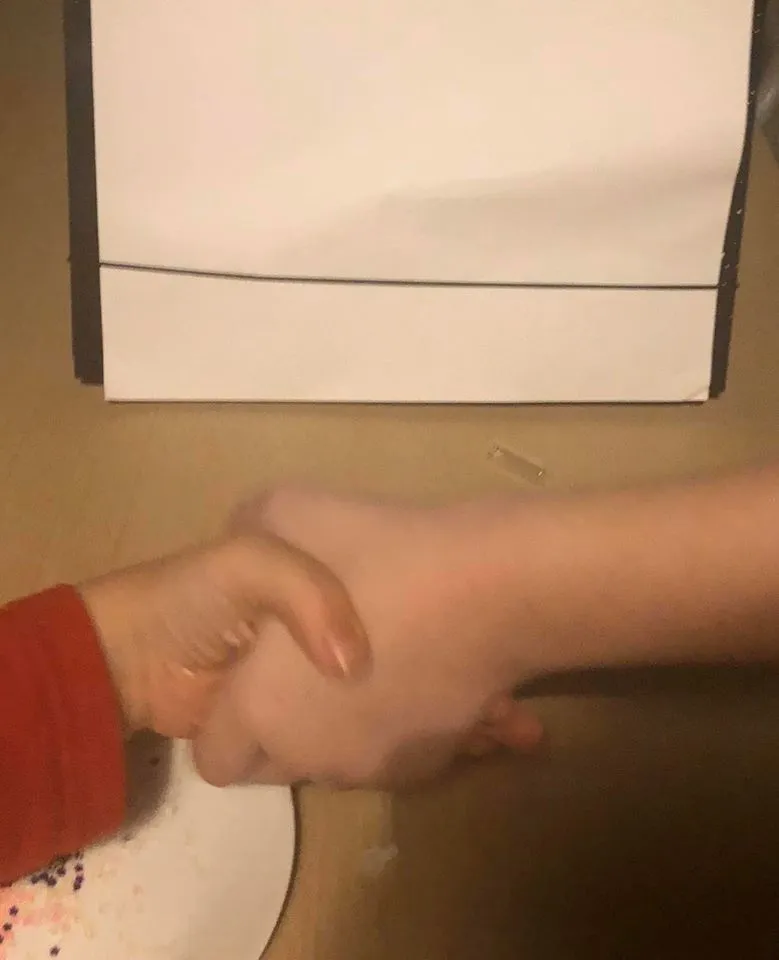 „Azután a két fiam kezet fogott, mindkettőjük keze csuklóig csillogott, még én is meglepődtem, mennyi csillogó került át egyetlen kézfogástól.”