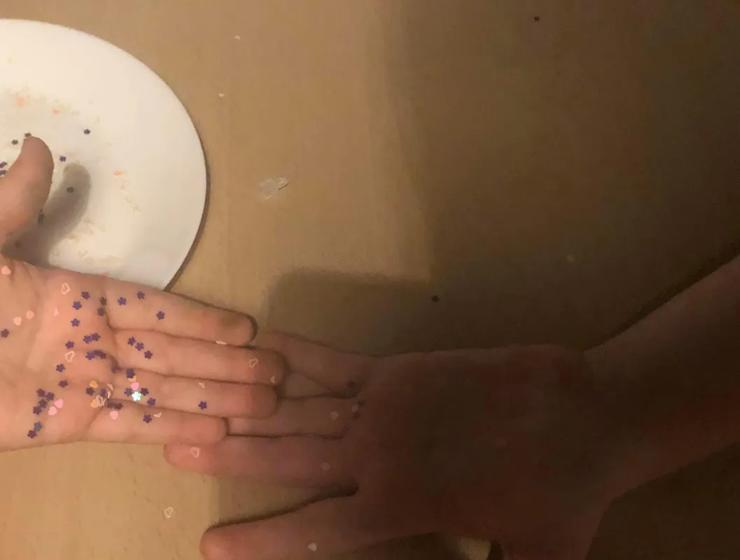 „Majd amikor a csillogókkal teleszórt kezét odaemelte az arcához, pár másodperc alatt rengeteg glitter megtapadt.”