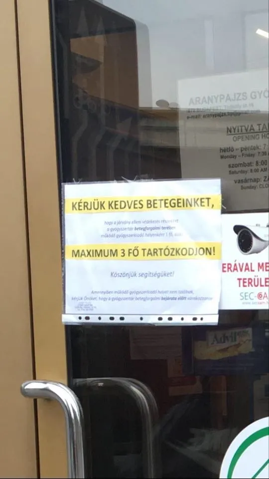 A hatóság azt kéri a gyógyszertáraktól, hogy csak annyi beteget engedjenek be, ahány gyógyszerkiadó hely (pult) működik és az erre vonatkozó figyelmeztetést tartalmazó plakátot tegyék ki. Ha esetleg tele van az adott patika, akkor a betegek várják meg, amíg felszabadul az egyik pult. Emiatt sor alakult ki néhány nagy forgalmat lebonyolító patika előtt.