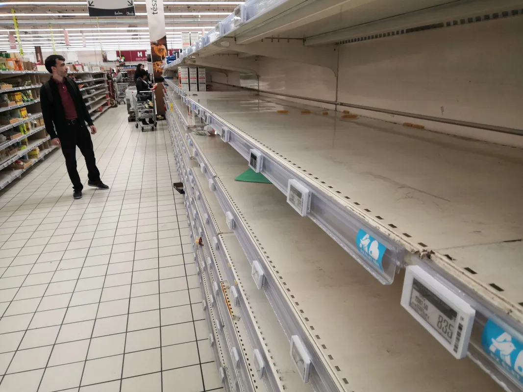 A szerdai „Veszélyhelyzet” bejelentése után, mint az a Ripost fotójából is látszik, sokan újból felvásárlási rohamot indítottak, ami teljesen felesleges.