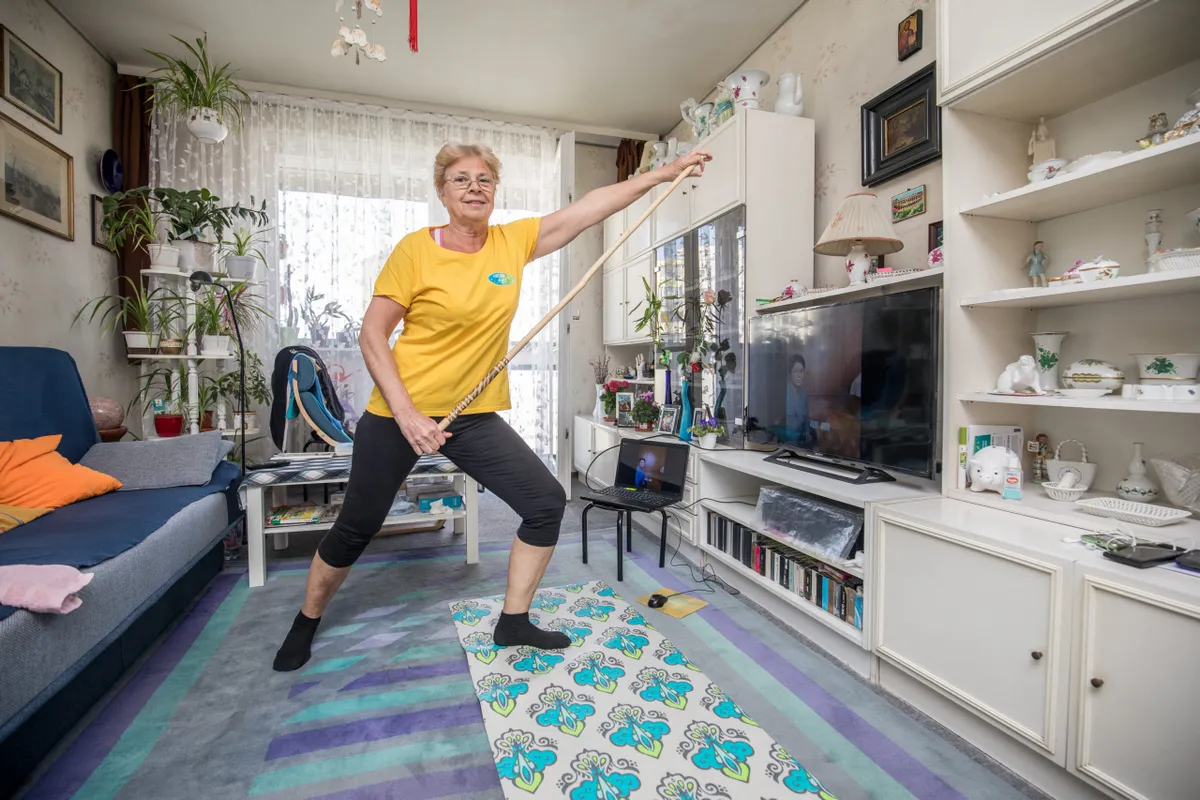 „Mindig bemelegítéssel kezdünk, fentről indulva mozgatjuk át az izmokat. Én a saját testsúlyos edzésre esküszöm, mert ilyen korban az a legbiztonságosabb, de hogy izgalmasabb legyen, eszközöket is segítségül hívunk. Mindent, ami otthon is van: partvisnyél botos edzéshez, üres üvegek súlyzónak, de egy köntös övvel is lehet remek szalaggyakorlatokat végezni” – mondta el a Ripost-nak az edzéseket tartó Potos Ilona. Hozzátette: az egyesület tagjai keresték meg, hogy oldják meg valahogyan a kialakult helyzet miatt elmaradt tornákat.