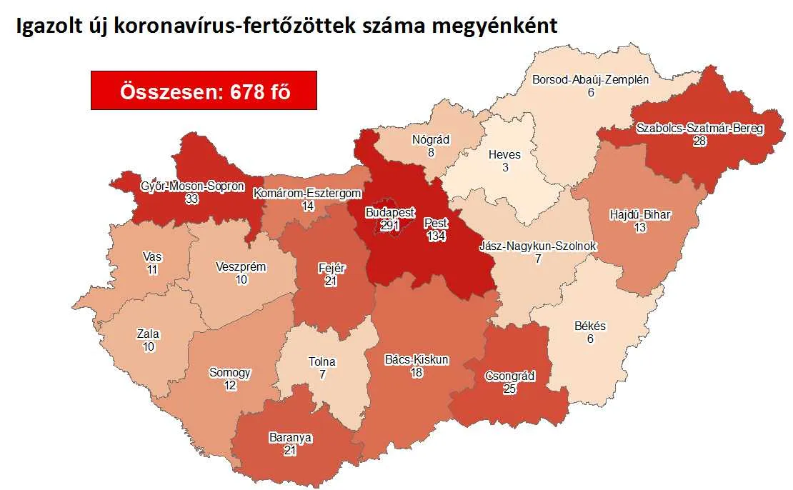 Újabb magyar állampolgároknál mutatták ki az új koronavírus-fertőzést (COVID-19), ezzel 678 főre nőtt a hazánkban beazonosított fertőzöttek száma. Az elhunytak száma is nőtt sajnos 6 fővel, már 32-en haltak bele a járványba.