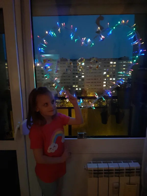 A fürdés utáni, még mindig megható esti program: a közös taps a koronavírus idején is az emberekért fáradozók tiszteletére. Ezúttal már az ablakba kitett világítós szívvel.