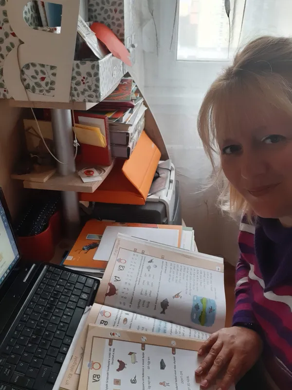 Bea ismét dolgozik online: a diákok szüleinek kérdéseire válaszol, tippeket, ötleteket ad, miközben lánya játszik, illetve mesét néz a szobájában.