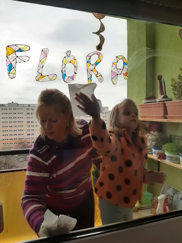 A kreativitás ideje: Bea és Flóra ablakot pucol, majd világító szívet készít, amit este ki szeretnének tenni az ablakba. Így fejezik ki hálájukat azok felé, akik a járvány idején is fáradhatatlanul dolgoznak az emberekért.
