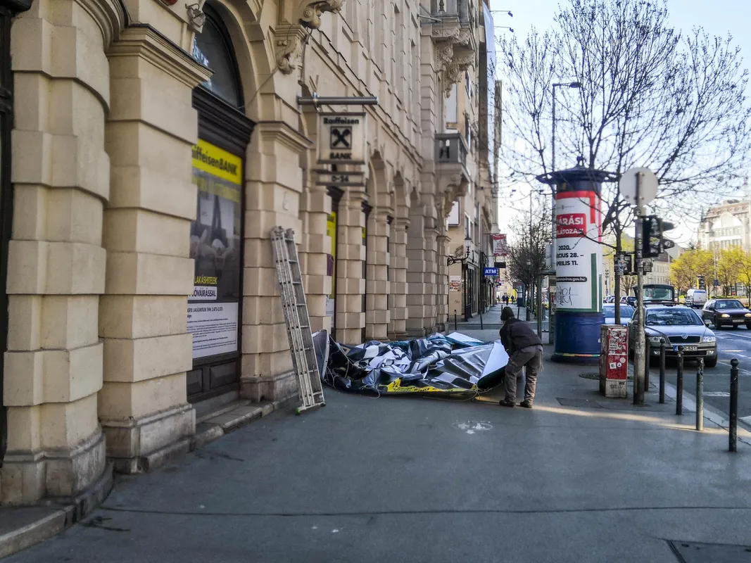 Egyre több gigantikus plakátot szednek le budapesti házfalakról, de helyükre nem kerülnek újak.