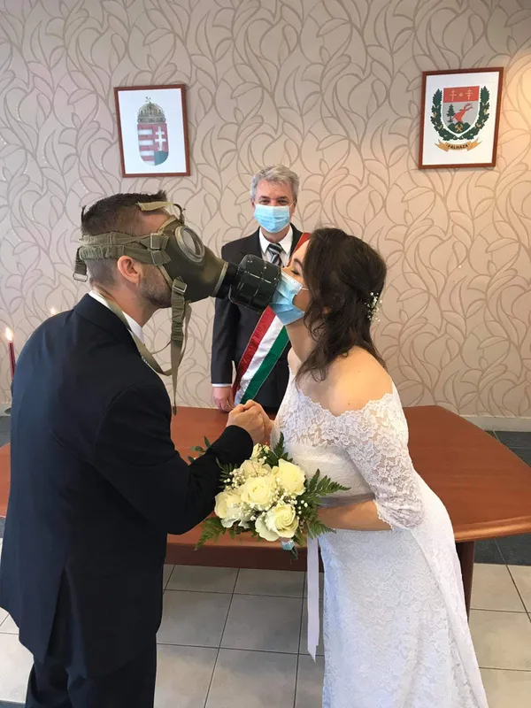 „15-20 perc volt a szertartás. Az ültetés azonban nagyon fura volt. A párommal nem is tudtuk megfogni egymás kezét. Legalább 1 méter távolság volt a székek között. A családtagok hasonlóképpen. A hivatalban maximálisan betartották az előírásokat, és természetesen mi is. A párom levette a polcról a 30 éve őrizgetett gázmaszkját, amit még gyerekként talált. Most végre hasznát tudta venni” – nevetett Tamara. „Nagyon különleges és romantikus pillanatokat éltünk meg.”