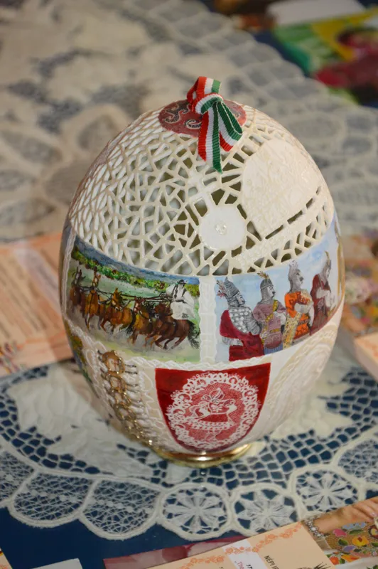 Fotó: Zsigóné KatiA Magyar Nemzet Tojásával tavaly húsvétra készült el Zsigóné Kati. 79 szimbólumot és gondolatot jelenített meg rajta, amik a magyar nép sorsáról szólnak. 11 díszítési technikát alkalmazott és 16 tisztaarany patkóval patkolta meg.