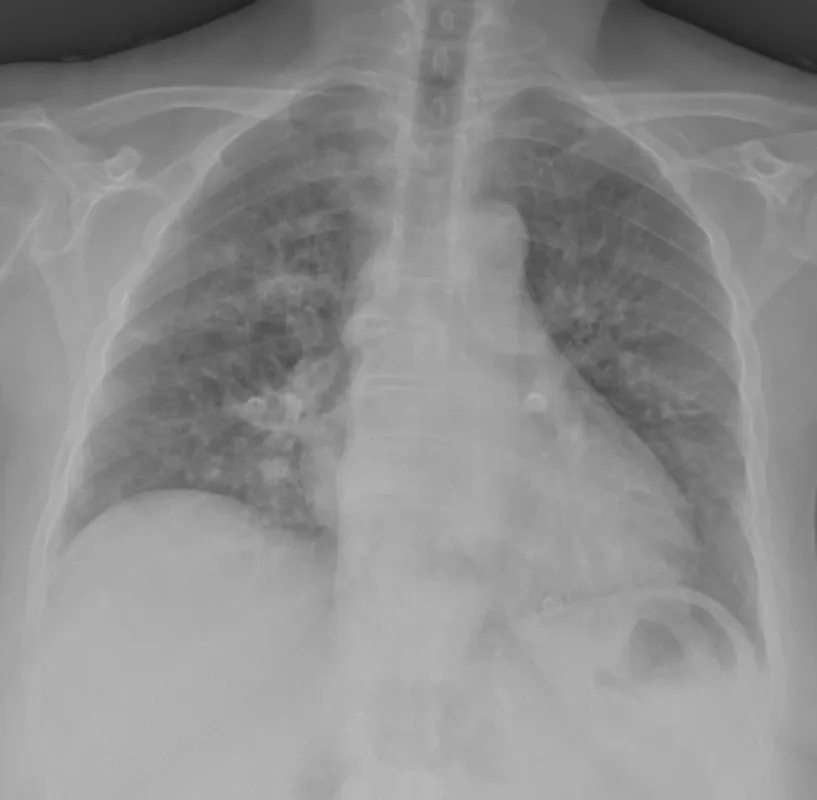 Egy koronavírussal fertőzött ember mellkas röntgen felvétele Fotó: Dr. Vécsey Richárd Ádám