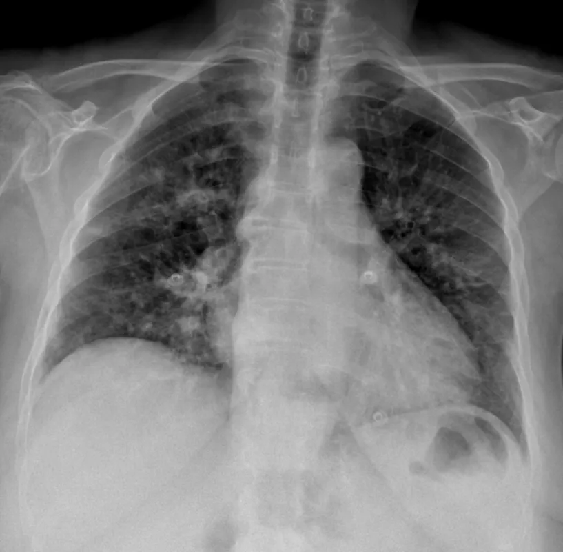 Ez pedig ugyan annak a betegnek a tüdőfelvétele, de már úgy alakítva, hogy az algoritmus könnyedén felismerje az elváltozásokat Fotó: Vécsey Richárd Ádám
