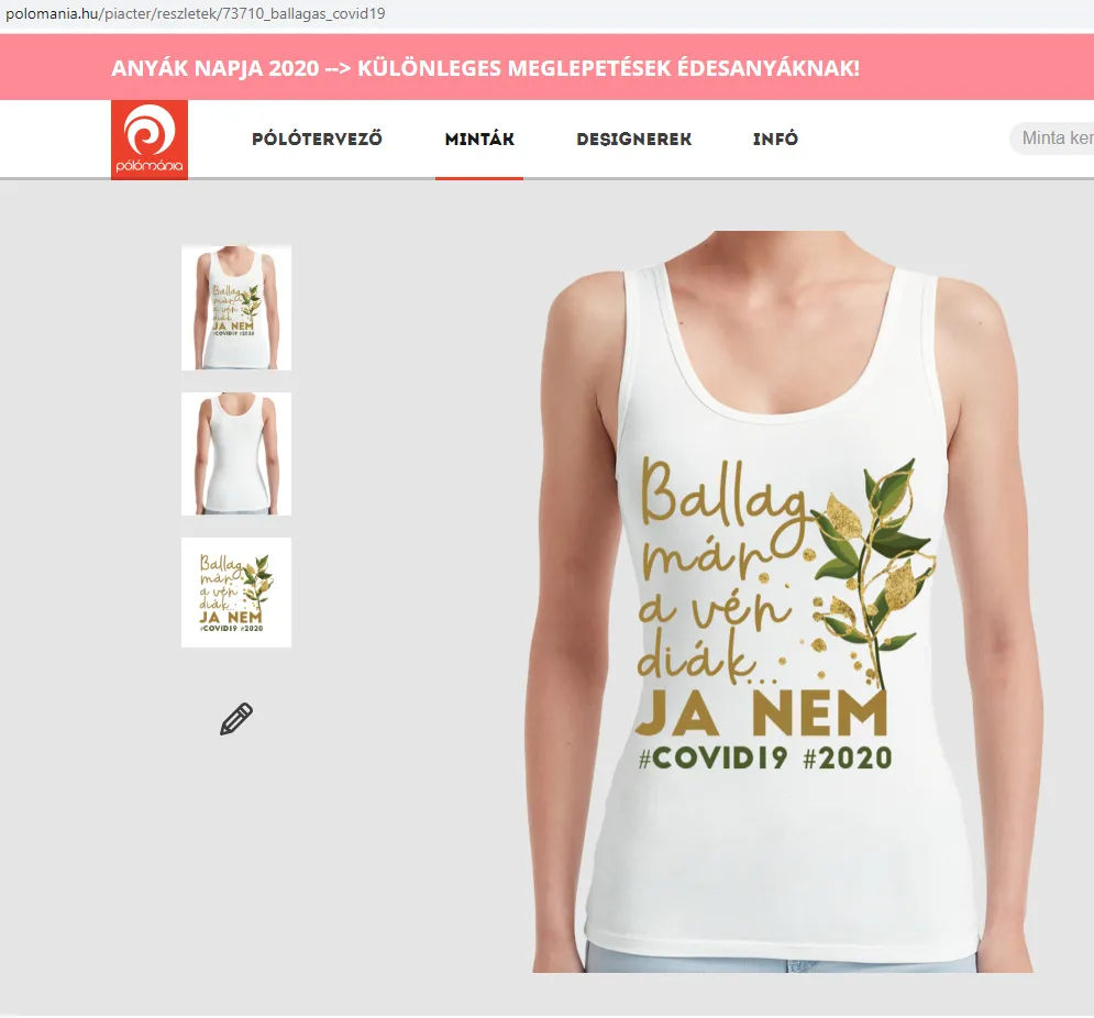 A hagyományos ballagási ruha helyett most a vicces pólók hódítanak, melyek a jelenlegi járványügyi helyzetet figurázzák ki. A legfrappánsabb feliratok között szerepel a „Ballag már a vén diák, Ja, nem”, a „Covid19-2020”, a „Ballagási ünnepség megkoronázva” és a „Ballagás 2020. – amikor mindenki karanténban volt”.