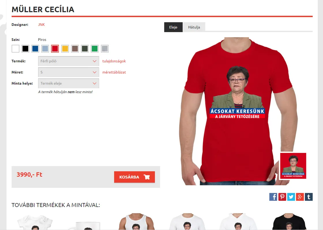 Az országos tisztifőorvos arcképével is árulnak pólót a neten, szintén nem olcsón, 4.000 forintért. Müller Cecília folyamatosan dolgozik, minden nap élőben jelentkezik be a tévében, terepszemléket is tart kórházakban, idősotthonokban. Így egészen biztos, hogy ideje és lehetősége sem lett volna rábólintani egy olyan vicces feliratú pólóra, melyet az ő arcával próbálnak eladni...