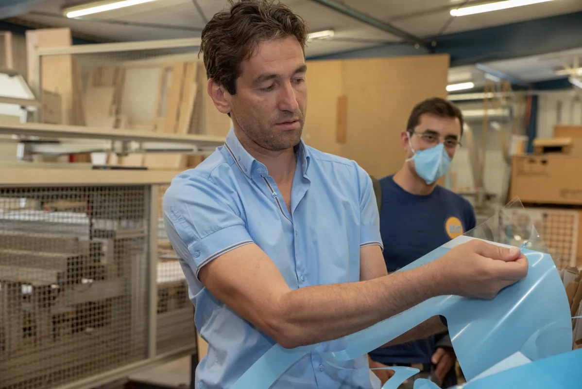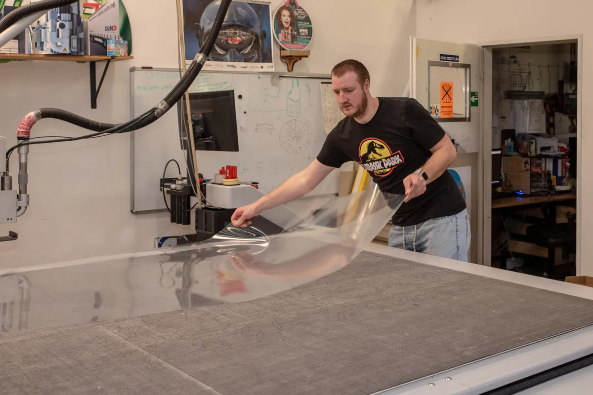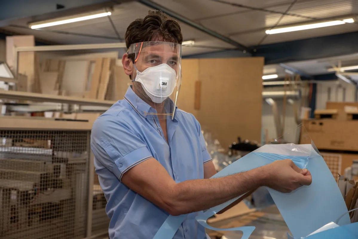Leventéék cége sok olyan géppel dolgozik, ami lézerrel vagy késsel ki tudja vágni a formákat. A változás az, hogy most nem autótechnikai eszközöket és formákat vágnak ki, hanem arcvédőket.