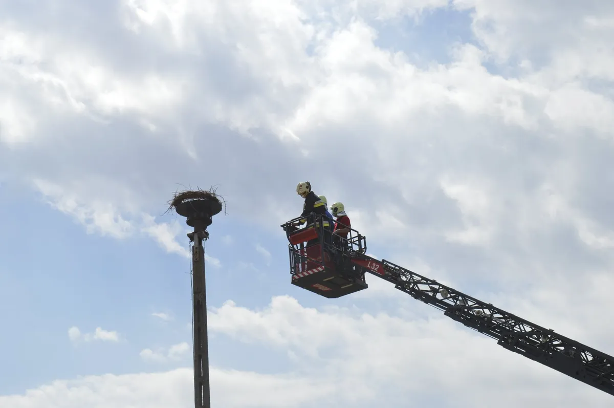 Két gólya fészekrakását segítették a magyar tűzoltók, nem is akárhogy...