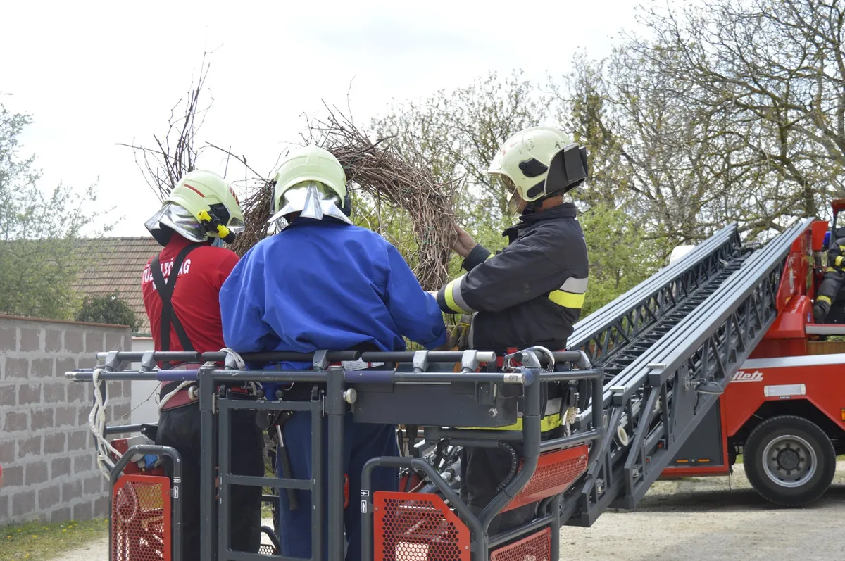 A gólyacsalád több hete próbált fészket építeni egy magas betonoszlop tetejére, ám egyik alkalommal sem jártak sikerrel. Ekkor döntöttek a tűzoltók úgy, hogy egy erre a célra készült kerettel és gallyakból szőtt fészekkel segítenek a madaraknak a költözködésben.