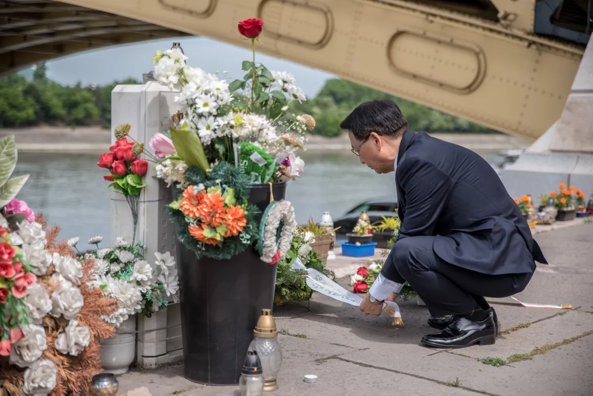 Fotó: Sulyok László Budapesten, a Margit híd pesti hídfőjénél állítanak emlékművet a Hableány sétahajó áldozatainak – jelentette be Szijjártó Péter külgazdasági és külügyminiszter péntek délelőtt a helyszínen. Egy magyar-koreai alkotópárost bíztak meg a tervek elkészítésével, ami akkor valósulhat meg, ha arra az áldozatok családtagjai igent mondanak. - Ha ez megtörténik, készen állunk arra, hogy közösen elkészíttessük az emlékművet, hogy minél hamarabb itt állhasson, a Margit híd pesti hídfőjénél – tette hozzá. Csö Kju Szik, a Koreai Köztársaság magyarországi nagykövete elmondta: a nagykövetség mindent megtesz annak érdekében, hogy valamennyi vigaszt nyújtson az áldozatok családjának, és azért, hogy a megfelelő felelősségre vonás és kárpótlás minél előbb megtörténjen.