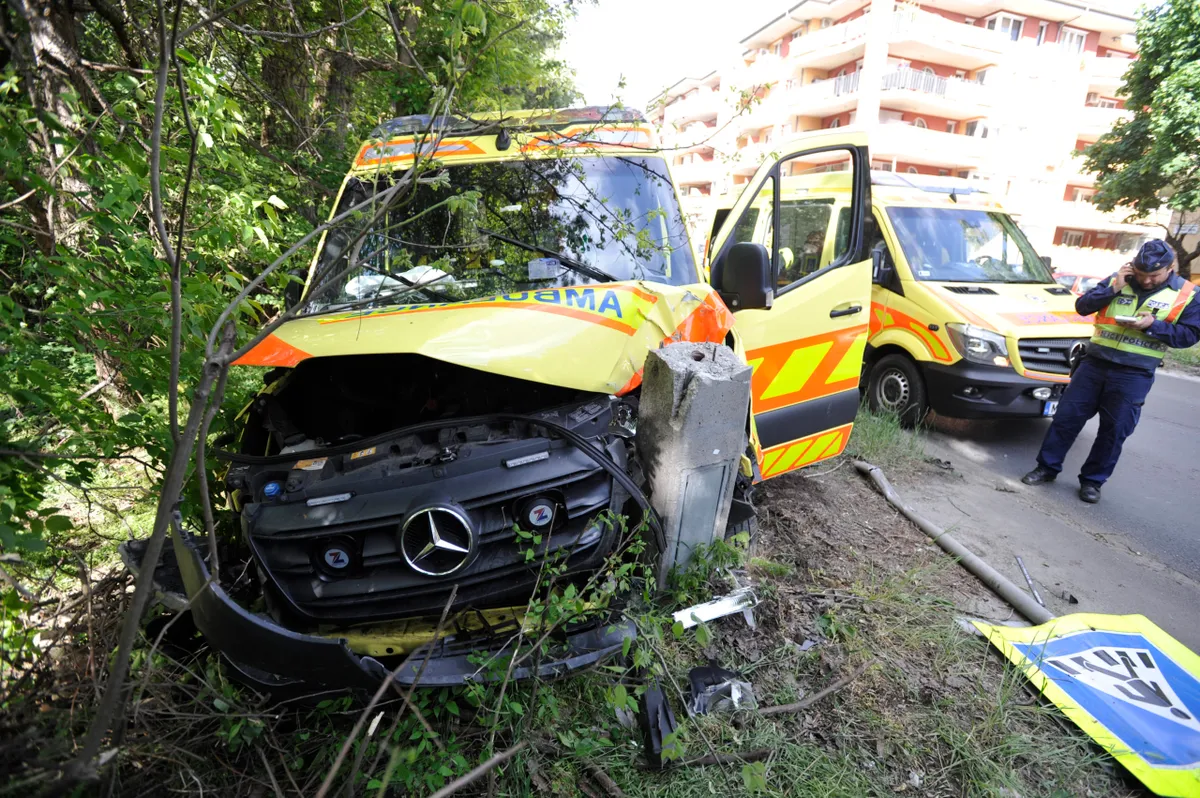 Mentő és autó karambolozott Budapesten – sokkoló fotók