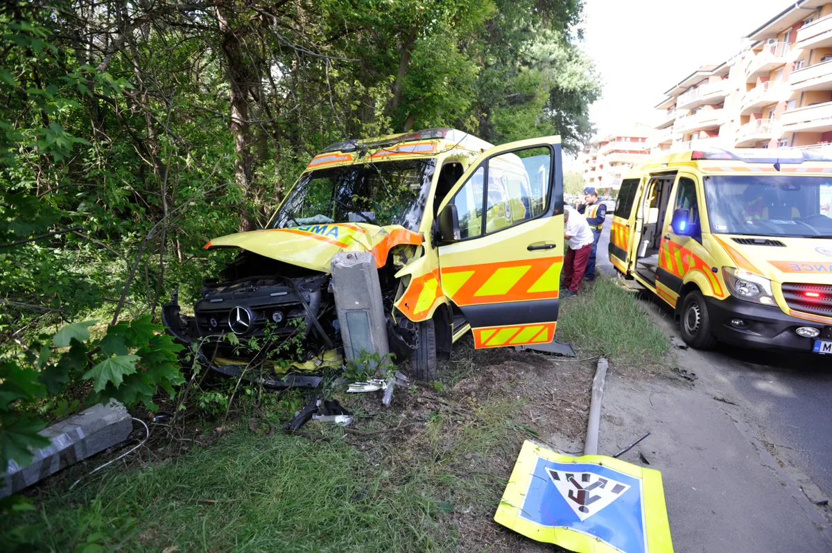 Összeütközött egy autó egy mentőautóval Budapest XVIII. kerületében, a Nemes utcában. A karambol következtében kidőlt egy lámpaoszlop is – ezt a mentőautó döntötte ki.
