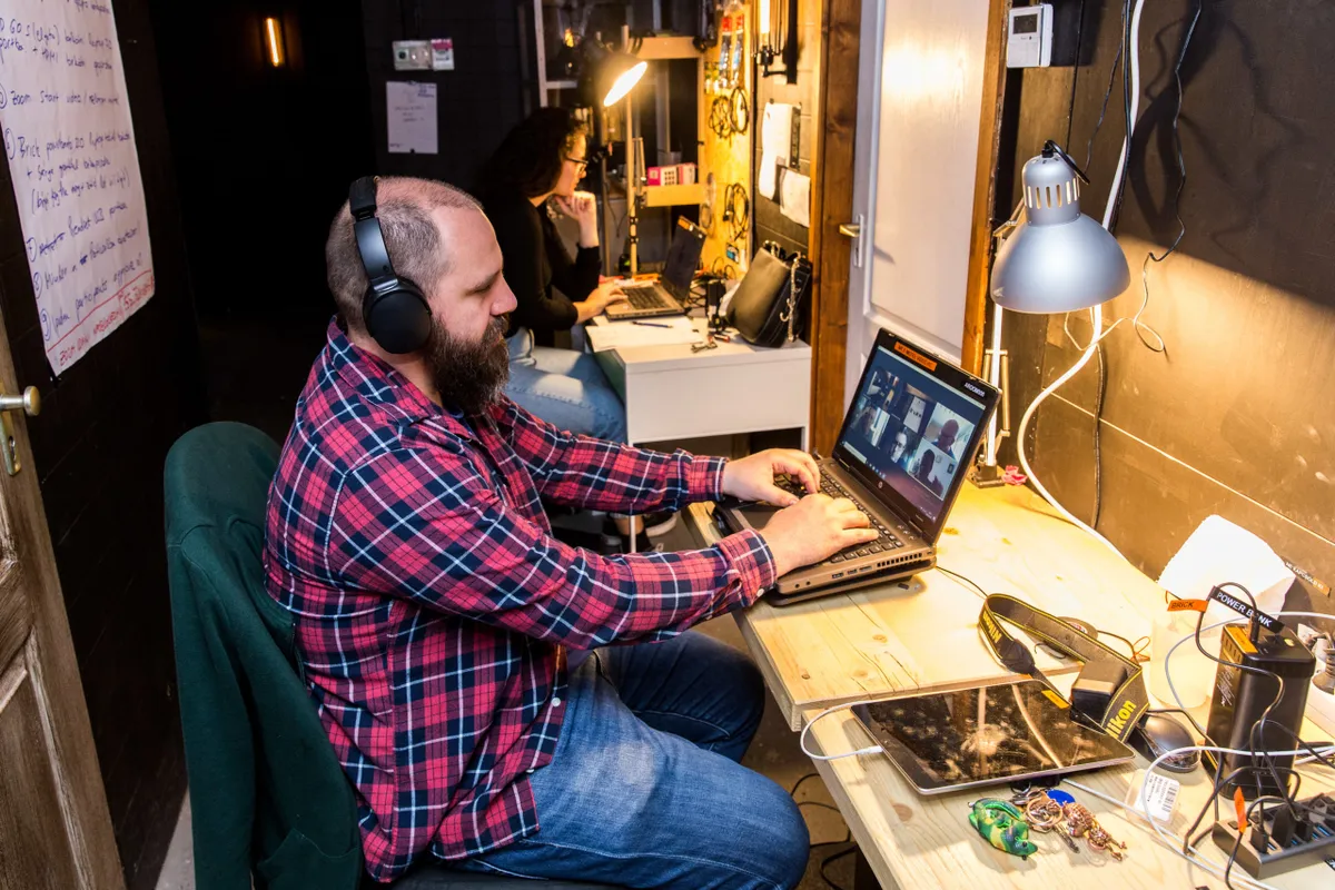 A játékosok az interneten kiválasztják azt a pályát, amit szeretnének látni és élő videó beszélgetésben bekapcsolódva látják a társaikat, a játékmestert és a kameráinkat. A játékmester egy fülhallgatón keresztül hallgatja a játékosokat, akik egy órán keresztül próbálkozhatnak kijutni a szabadulószobából„ – mondta Dávid, aki egy félmosoly kíséretében hozzátette: mi már az összes megfejtést tudjuk, mégis végig kell játszanunk a játékot.
