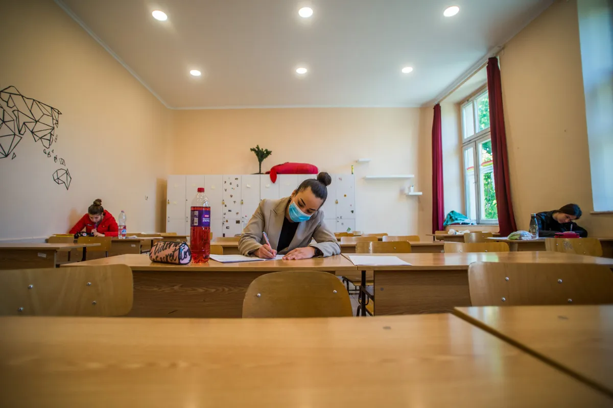 „Ki van osztva, hogy kinek melyik terembe kell mennie. A folyosón kötelező a maszk használata, majd amikor a teremhez érünk, fertőtleníteni kell a kezünket. Egy teremben csak tizen ülhettünk, persze a kellő távolságot megtartva. Ha a helyemre leültem, levehettem a maszkot, de ha fel akartam állni valamiért és odasétálni a tanárhoz, fel kellett vennem. Egyébként a tanárok és a segítők végig maszkban és kesztyűben figyelték, hogy mi dolgozunk.”