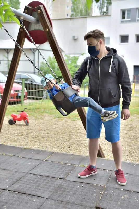 „Nagyon nagy öröm, hogy kijöhettünk játszani. De először megnéztük, mennyien vannak, mert ha nagy tömeg lett volna, nem jövünk be. Én figyelek a lányom és a magam egészségére, de ezt a járvány előtt is megtettem. Túl van tolva ez a járvány, arról senki sem beszél, hogy itt a játszótéren simán el lehet kapni egy hányós-hasmenéses vírust békeidőben is, így mindig vigyázni kell.”