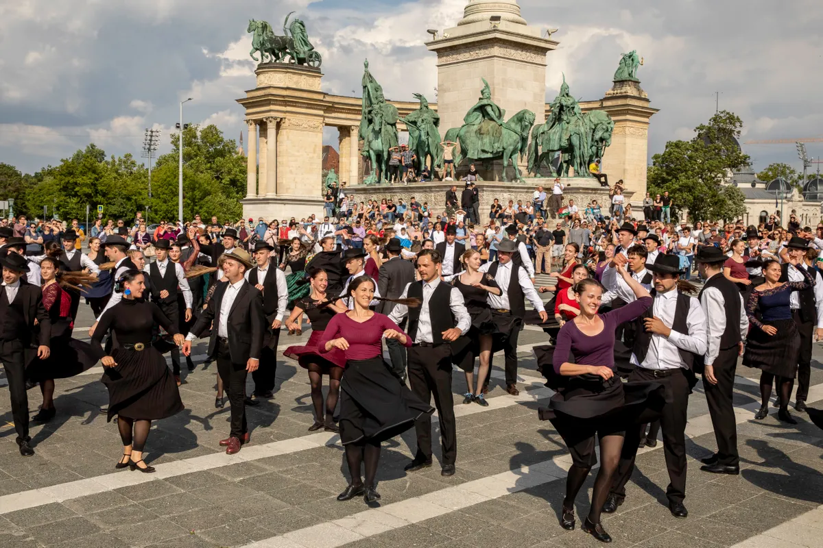 A 100 táncos közös, élőzenével kísért néptánc előadása fantasztikus volt. A táncosok a Himnuszt is elénekelték, amely szívbemarkoló volt.