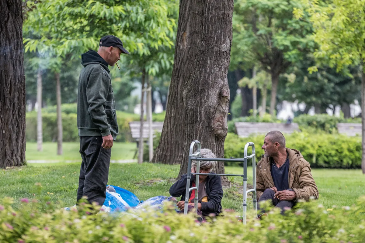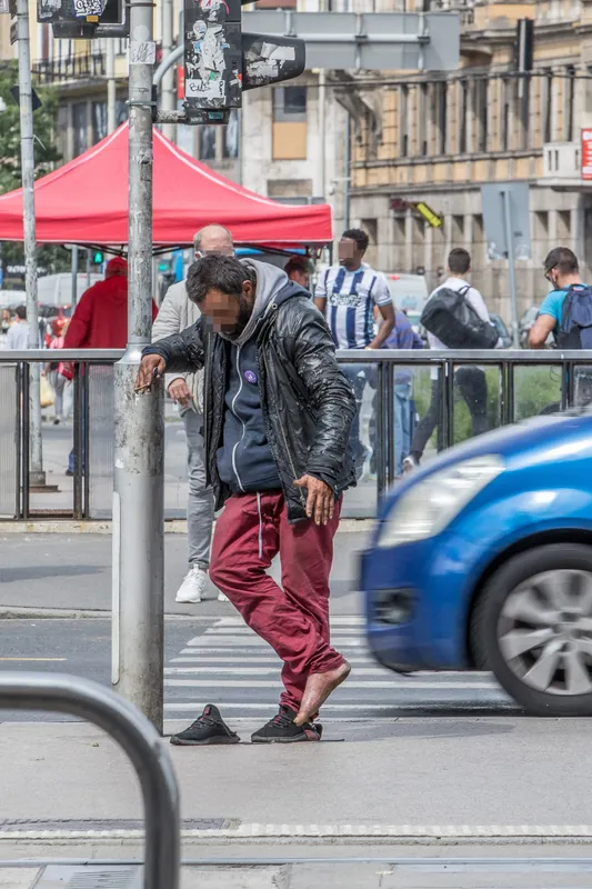 A Blaha Lujza téren tömegével ülnek a buszmegálló és az aluljáró közelében a hajléktalanok, de van, aki állandóra ideköltözött és fényes nappal is az utcán alszik. A környék bűzlik az alkoholszagtól és a cigifüsttől, így az arra járók inkább fejüket elfordítva rohannak tovább.