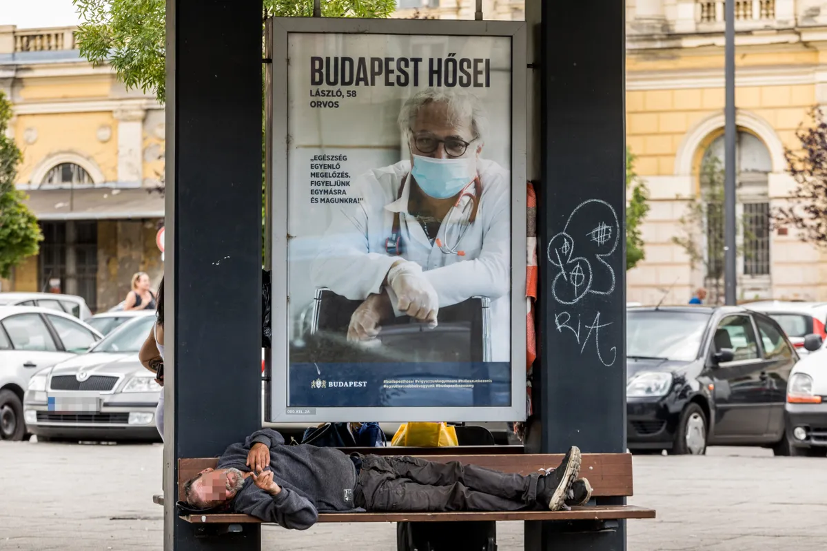 Ide is beköltöztek: Budapest szívében így néz ki egy pad, ahová normál esetben a járókelők ülhetnének le pár percre a szendvicsükkel vagy újságjukkal…