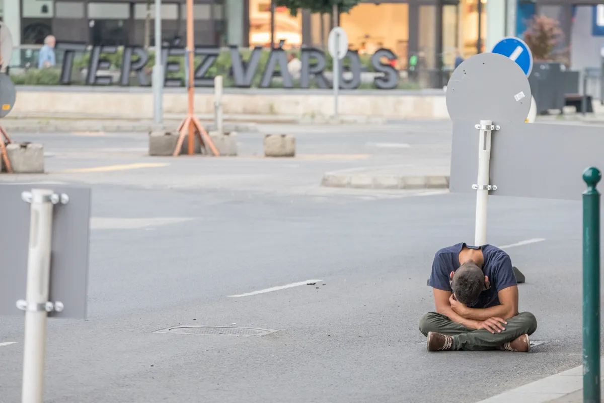 Szinte észre se veszik az autósok azt a férfit, aki több órája az aszfalton, egy elkerített részen lehajtott fejjel üldögél. Az aluljáróba is visszatérnek a hajléktalanok, és a lehajtott fejjel férfiakat leszólító prostituáltak.