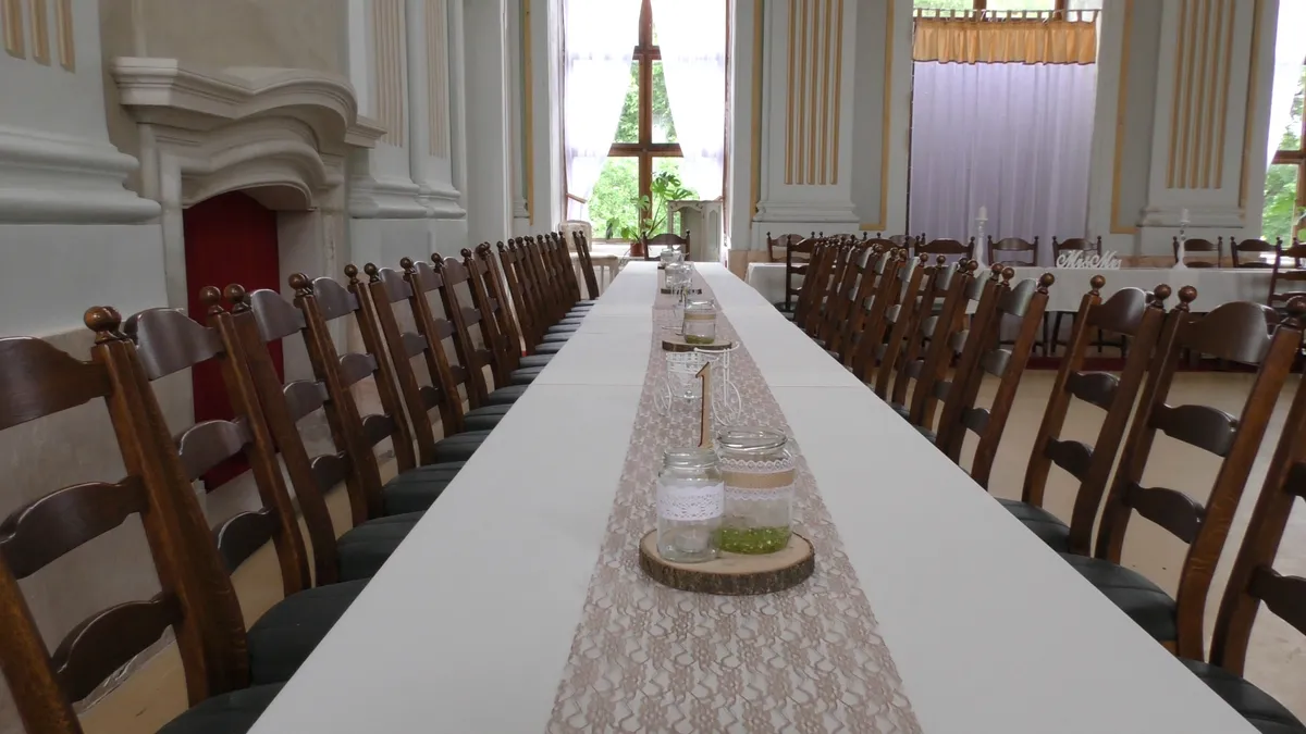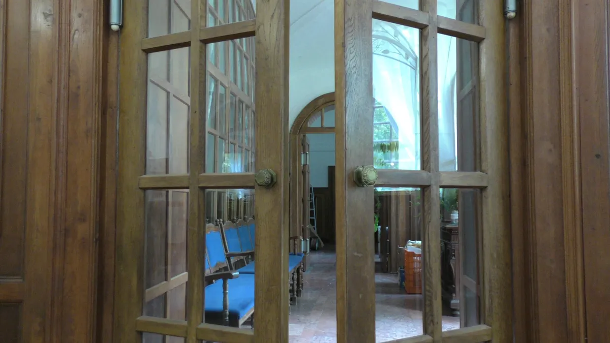 A díszterem felé vettük az irányt egy ódon folyosón keresztül, ahol szobák sorakoztak. Ahogy a végéhez értünk, vettük észre, hogy az előttünk lévő lengőajtó magától kinyílt. Majd becsukódott. Majd megint kinyílt. Összenéztünk: csak a huzat. A vendéglátónk is bőszen bólogatott. De miért himbálózott folyamatosan a lakat? Az egyik ajtó előtt a lakat szinte táncol...
