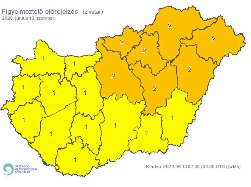 Az Országos Meteorológiai Szolgálat az egész ország területére riasztást adott ki a felhőszakadás és zivatarok miatt, jégesőre is számítani kell!