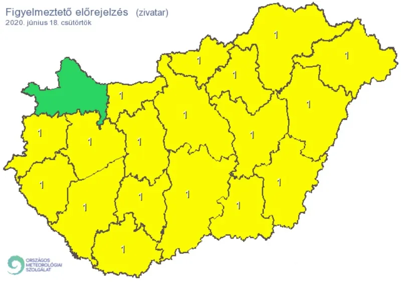 Országszerte lehet ismétlődő záporokra, zivatarokra számítani. Elsődleges veszélyforrást a villámlás jelenti, emellett esetenként szélerősödés, jégeső is előfordulhat! Intenzív záporokból, zivatarokból rövid idő alatt 25-30 mm-t meghaladó csapadék is hullhat – írja az OMSZ.