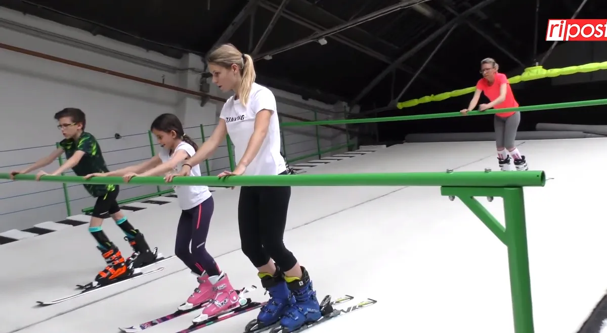 A budapesti teremsípálya tulajdonképpen egy oktatógép: összesen 66 négyzetméteren lehet síelni egy sűrű szövésű, szilikonnal kezelt szőnyegen.