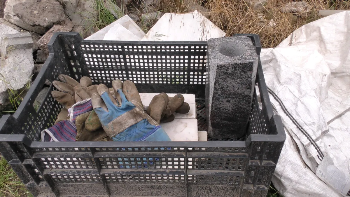 Sírkő és virágtartó a hulladék között Fotó: Ripost