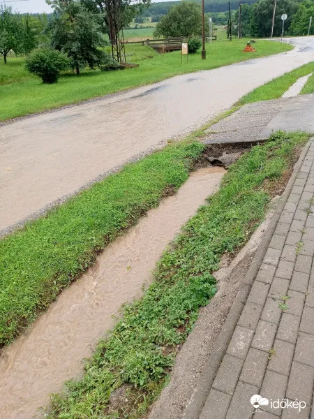 A több órán át tartó viharban lehullott jelentős mennyiségű csapadék miatt a vízelvezető árkok megteltek.