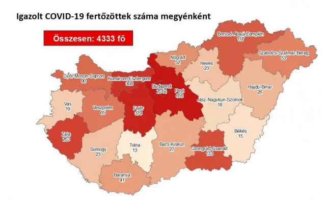 18 újabb magyar állampolgárnál mutatták ki az új koronavírus-fertőzést (COVID-19), ezzel 4333 főre nőtt a hazánkban beazonosított fertőzöttek száma.