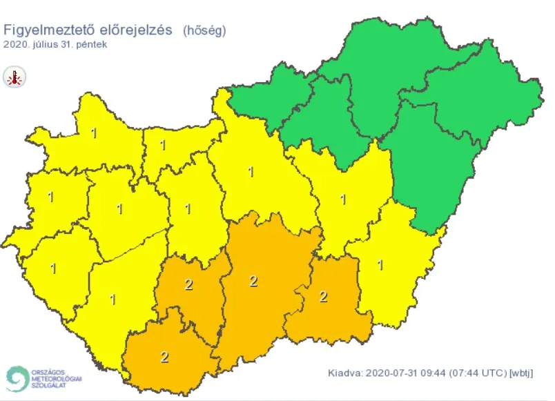 A hőség veszélye miatt első- és másodfokú figyelmeztetéseket is kiadott az Országos Meteorológiai Szolgálat péntekre.